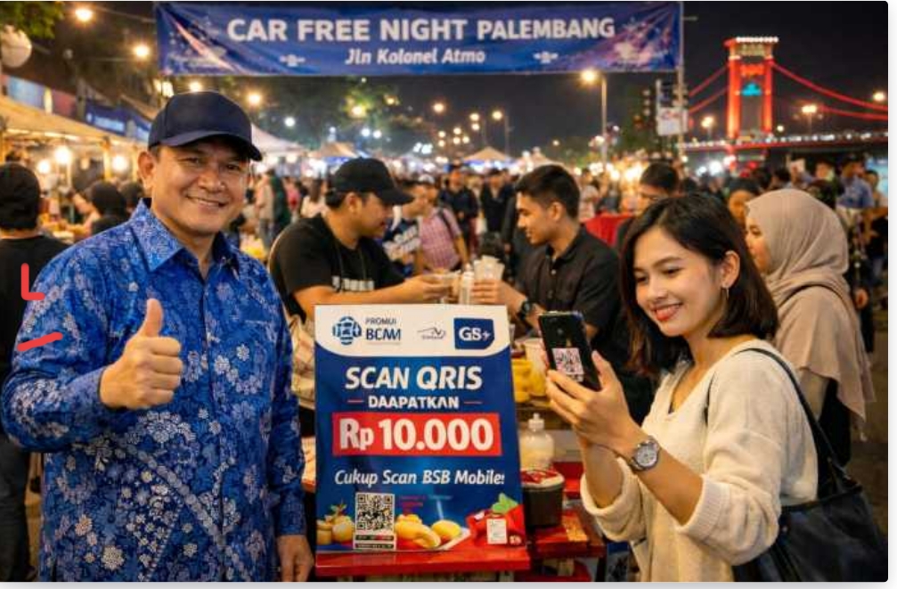 Gandustv.com, PALEMBANG – Malam Minggu di Car Free Night Palembang kini tak sekadar soal kuliner dan hiburan. Bank Sumsel Babel (BSB) menghadirkan pengalaman baru: cukup scan QRIS, langsung dapat diskon Rp10.000.hemat