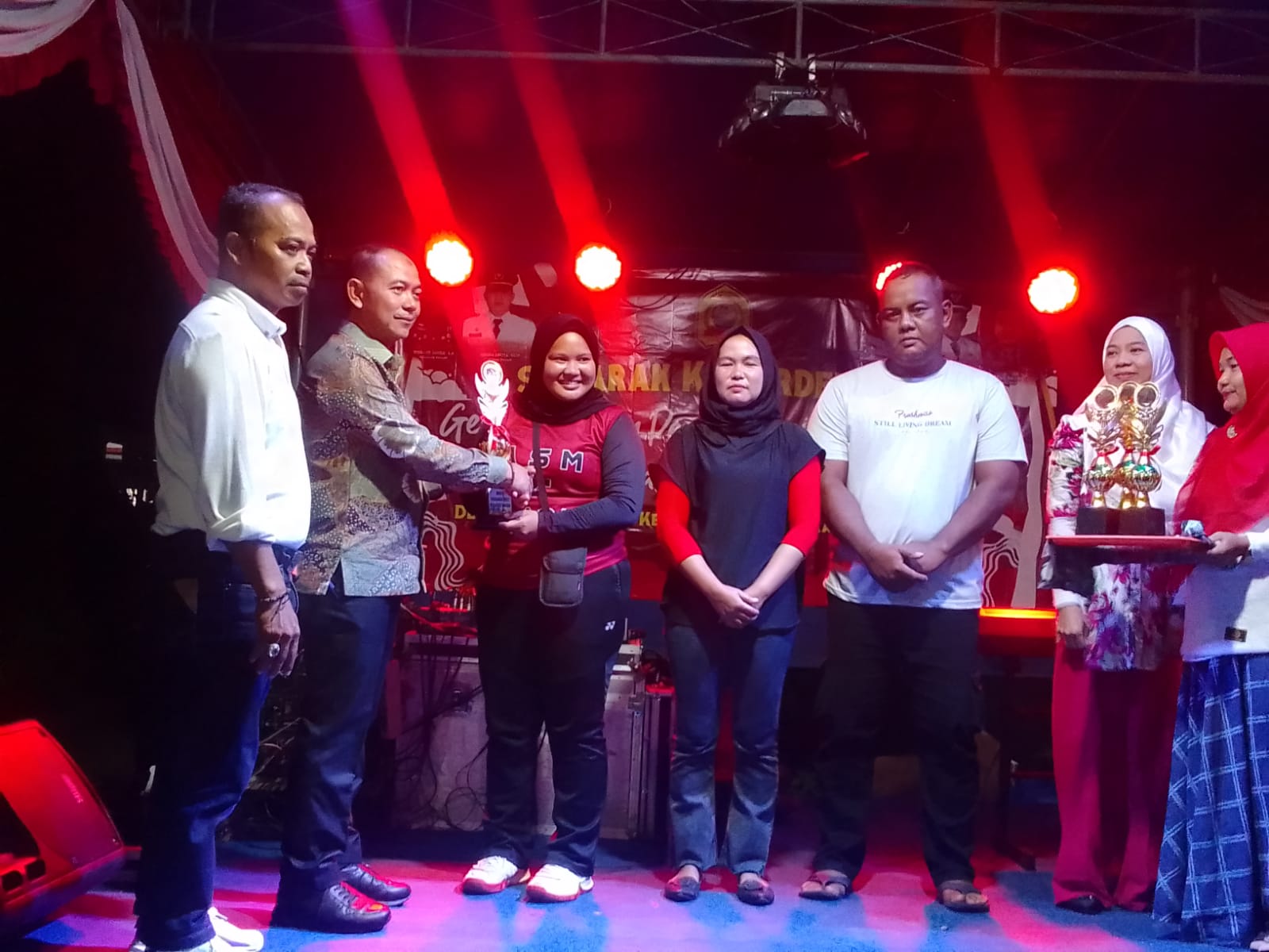 H. Mulkan, SH. MH Serahkan Piala dan Terovi kepada Juara Lomba Bola Voli dalam Gebyar Malam Penutupan Semarak Kemerdekaan