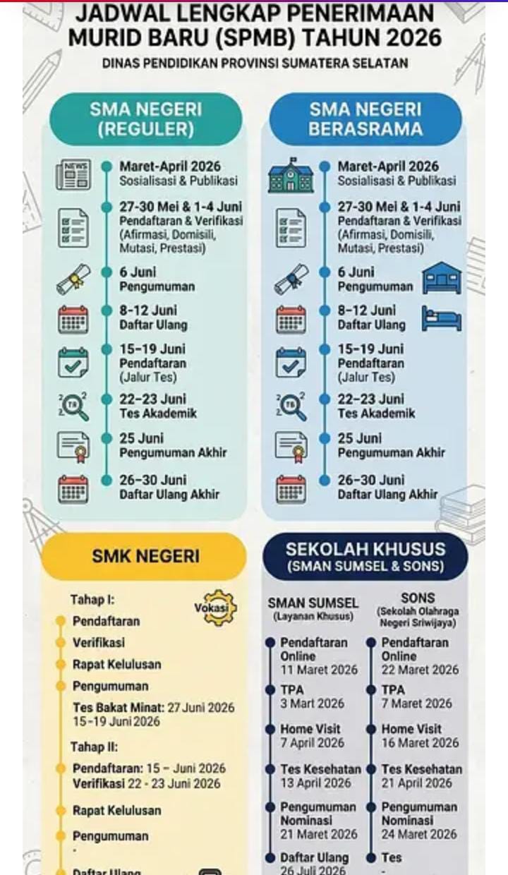 ”Kami optimis dengan persiapan yang lebih matang dan koordinasi yang solid antara jajaran pimpinan dinas dan sekolah, SPMB 2026 di Sumatera Selatan akan berjalan sukses dan mampu memberikan rasa keadilan bagi seluruh calon peserta didik,” tutupnya.