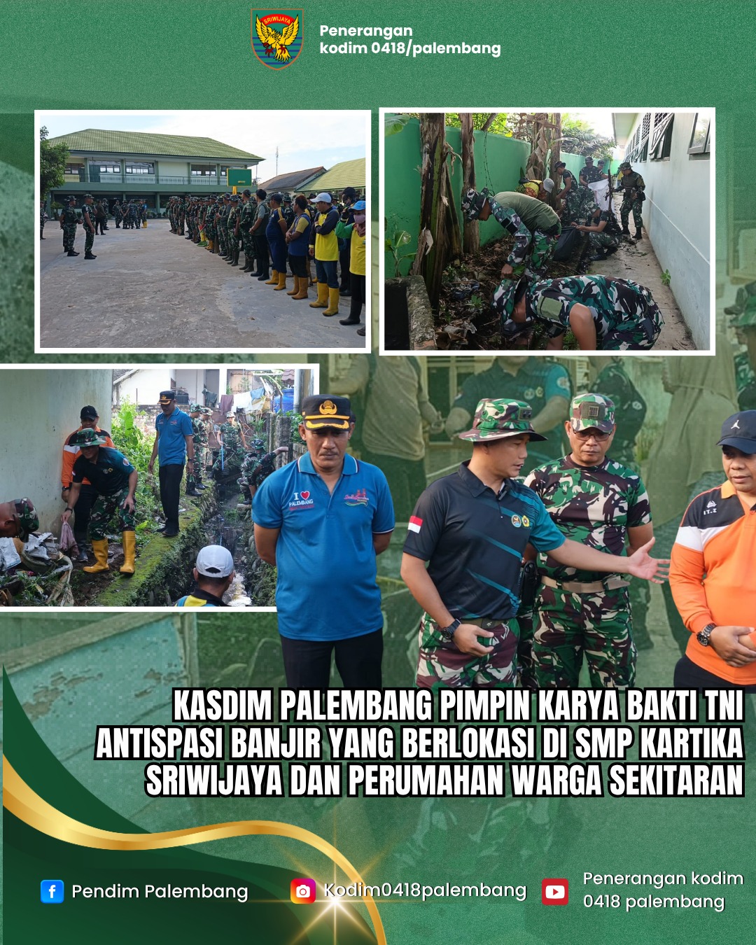 Dandim 0418/Palembang Kolonel Arh Erik Novianto, S.Sos melalui Kasdim mengatakan bahwa kegiatan ini merupakan langkah nyata dalam mengantisipasi banjir sekaligus memperkuat sinergi antara TNI dan masyarakat.