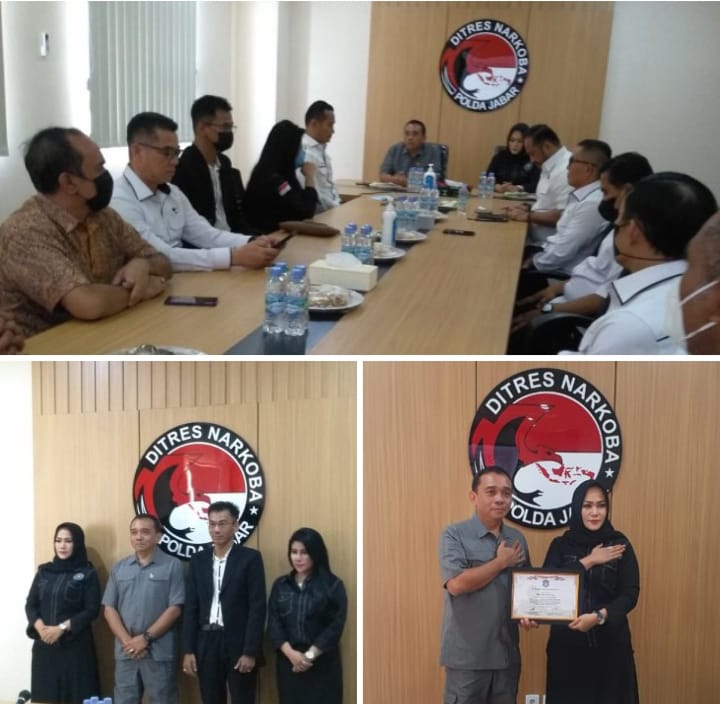Gandustv.com, Jawa Barat – Nurfrafyanti Fanny ketua Yayasan ( Gugus Antisipasi Narkotika Narkotika Nusantara ) GANN Provinsi Sumatera Selatan didampingi Yanto Dharma,SH Sekretaris Yayasan GANN Jabar dan Asti Budiyanti,SH.,MH Bendahara Yayasan GANN Jawa Barat silahturahmi ke Polda Jawa Barat dan memberikan penghargaan kepada Direktorat Reserse Narkoba (Ditresnarkoba) Polda Jabar.