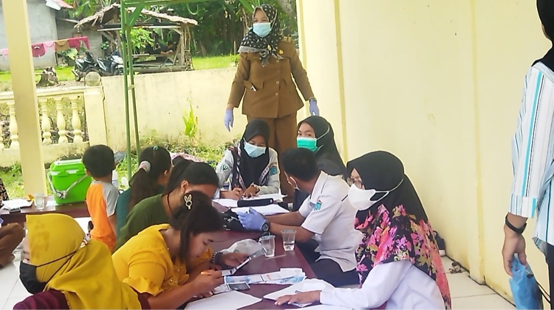 Suntik Vaksinasi Covid-19 Oleh Tim Vaksinator Puskesmas Rantau Panjang Di Kantor Desa Kotadaro 1 Kec.Rantau Panjang Kab.Ogan Ilir